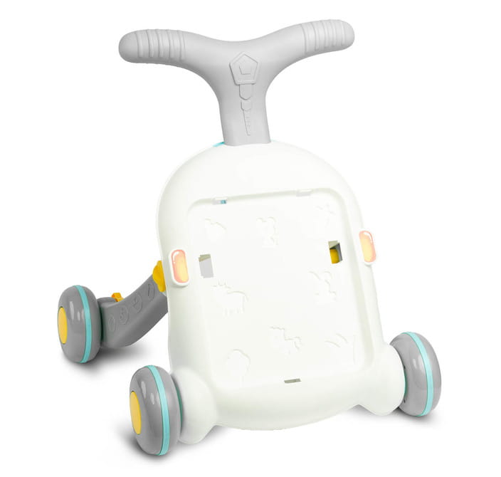 A járássegítő funkciónak köszönhetően a kicsi biztonságosan teheti meg első lépéseit, a beépített oktatóasztal pedig kiváló lehetőséget nyújt új készségek felfedezésére. A kormány magassága a gyermek magasságához igazítható, ami nagyobb stabilitást és kényelmet biztosít a járás tanulása során.