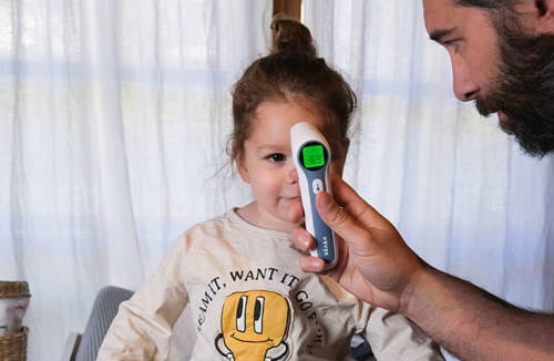 - Színkód: zöld kijelző 35°C-tól 37,5°C-ig, piros kijelző 37,6°C és 42°C között.