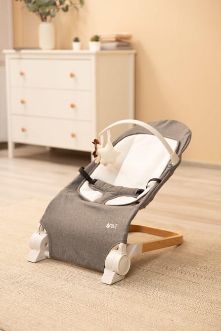 A PINE hintaszék nemcsak praktikusságával, hanem dizájnjával is lenyűgöz. A levehető plüss játékokkal ellátott kar szórakozást nyújt a babának, míg az elegáns fa alap stílust ad, és tökéletesen illeszkedik a gyerekszoba berendezéséhez.