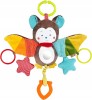 - Függő játék csörgővel, tükörrel, fogantyúval, rágókával, sípolóval és zörgő papírral.