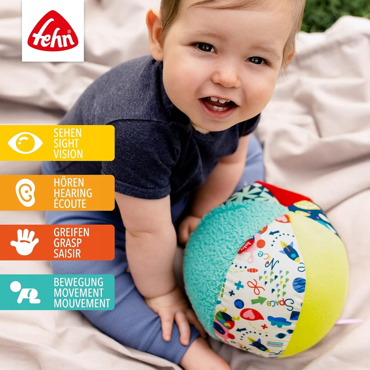 - Hűséges társ – figyelem, kis felfedezők: a softball izgalmas anyagkeverékével és csengőjével természetes kíváncsiságot ébreszt, és ösztönzi a gurításra, dobásra és játékra