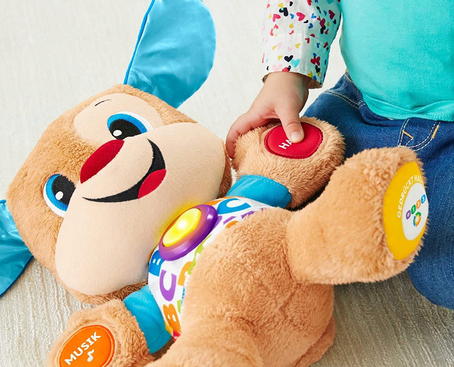 Ismerd meg gyermeked első legjobb barátját! A kiskutya puha, imád ölelkezni és készen áll bebizonyítani, hogy a tanulás szórakoztató! A baba érintésére vidám dalokkal és mondatokkal reagál, amelyek több mint 100 első szót, testrészek, színek, formák nevét és még sok mást tanítanak! Az oktatási tartalom magyar nyelven! Mivel minden gyermek a saját tempójában tanul, a kiskutya beépített „Tanulási szintek” technológiával rendelkezik – lehetővé téve, hogy kiválaszd a gyermeked fejlődési szintjéhez legmegfelelőbb szintet. A játék rengeteg dalt, hangot és mondatot kínál mindhárom játékszinten. Ráadásul a kiskutya színes, világító szíve a zene ritmusára villog! 1. szint – Felfedezés – A gyermek megnyomja a kiskutya mancsait, lábát, szívét, orrát vagy fülét, és meghallgatja az első szavakat, színeket, ábécét, testrészek nevét és még sok mást! 2. szint – Bátorítás – Ezen a szinten a vidám mondatok jutalmazzák a gyermeket, és ösztönzik őket a közös számolásra, színek keresésére és testrészek megmutatására! 3. szint – Utánzás – A kiskutyával közösen énekelhető dalok és mondatok ösztönzik a képzeletbeli játékot és a szerepjátékot, ami segít bővíteni a gyermek szókincsét!