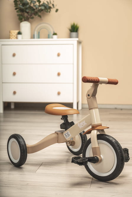 Átgondolt kialakításának köszönhetően a tricikli négy funkciót is betölt – futóbicikli, pedálos háromkerekű, pedálos kétkerekű és járgány, így minden fejlődési szakaszban alkalmazkodik a gyermek igényeihez és képességeihez. A tricikli 18 hónapos kortól körülbelül 5 éves korig ajánlott, és biztonságosan használható akár 25 kg testsúlyig.