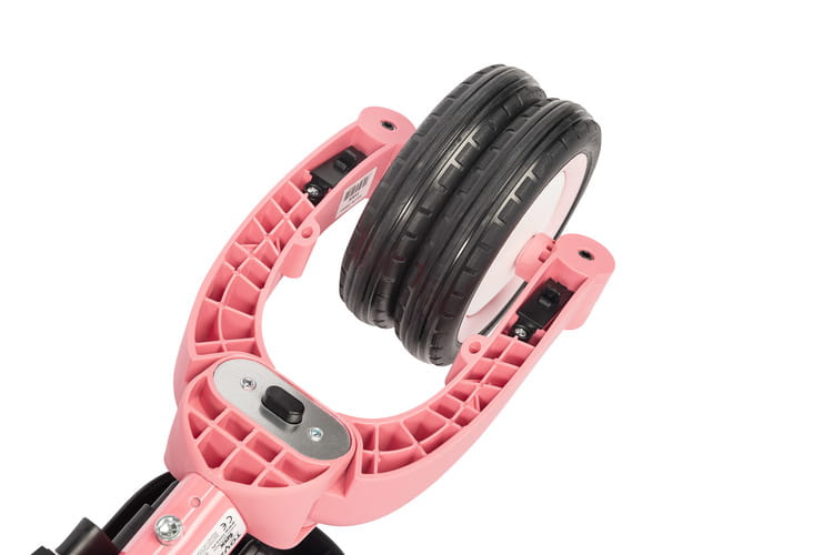 Az intuitív kialakítás lehetővé teszi, hogy a triciklit gyorsan átalakítsd egyik verzióból a másikba felesleges szerszámok nélkül. Összecsukva kompakt méretű, a tartós váz pedig megkönnyíti a szállítást autó csomagtartójában vagy akár egy sétára is magaddal viheted.