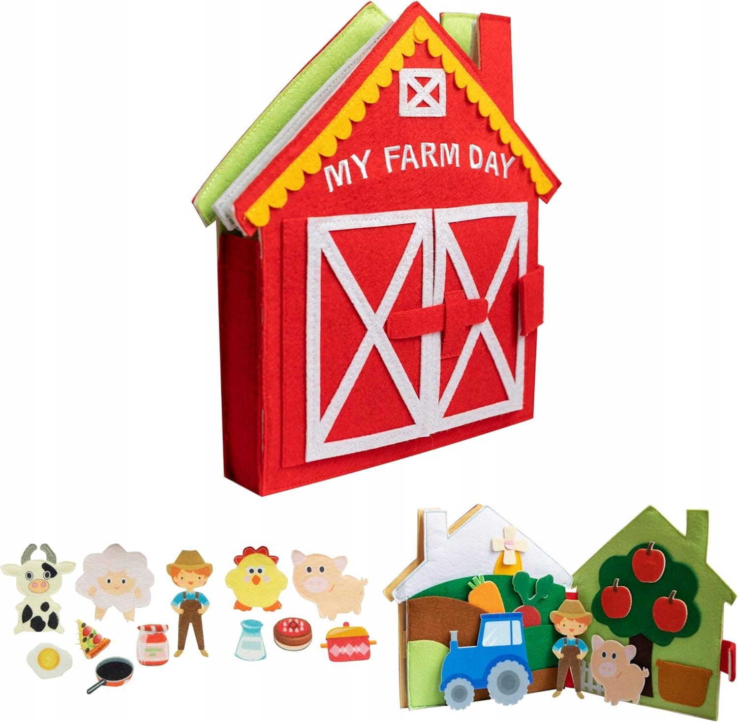 - Magas minőségű anyagok: a Quiet Book nagy odafigyeléssel készült. A filc tartósságot biztosít, a varrások erősek, a figurák és kivehető elemek optimális méretűek és vastagságúak.