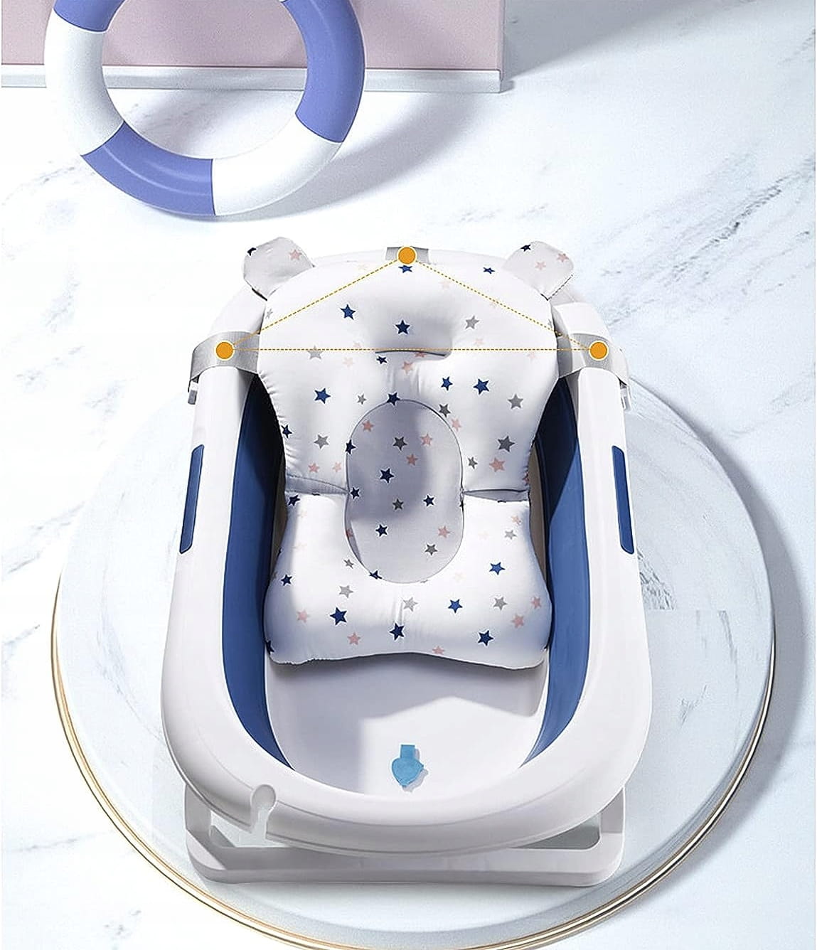 - Kis méretének köszönhetően a kád használható zuhanyzóban, felnőtt kádban vagy szinte minden sík felületen.