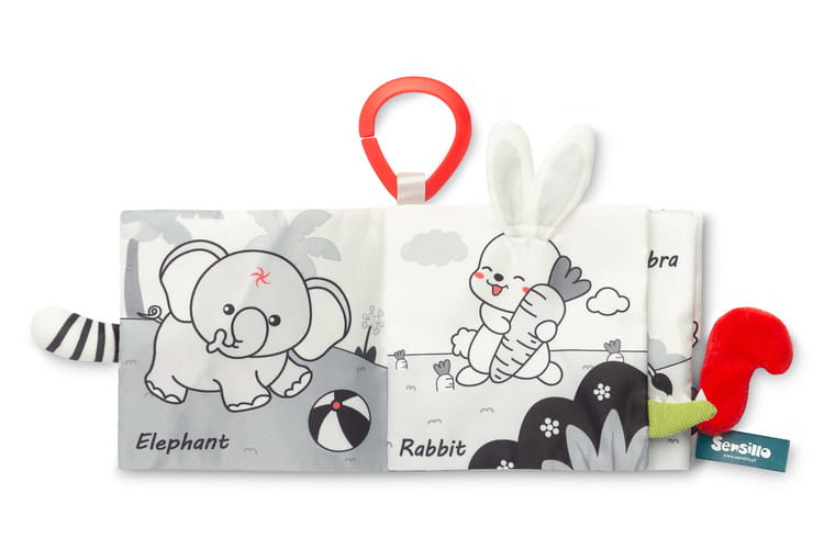 A fekete-fehér színvilágú szenzoros könyvecske egyedülálló játék, amelyet a baba érzékszerveinek stimulálására terveztek. Az illusztrációkat különböző textúrákkal és hangokkal ötvözi, gazdag szenzoros élményt nyújtva a csecsemőknek. Az egyszerű, mégis izgalmas fekete-fehér színpaletta hatékonyan serkenti a kicsik látását. A könyvecske minden oldala különböző anyagtextúrákat és sípoló vagy zörgő elemeket tartalmaz. A biztonságos anyagok és a puha oldalak használatának köszönhetően a könyvecske tökéletes választás otthonra és utazáshoz egyaránt.