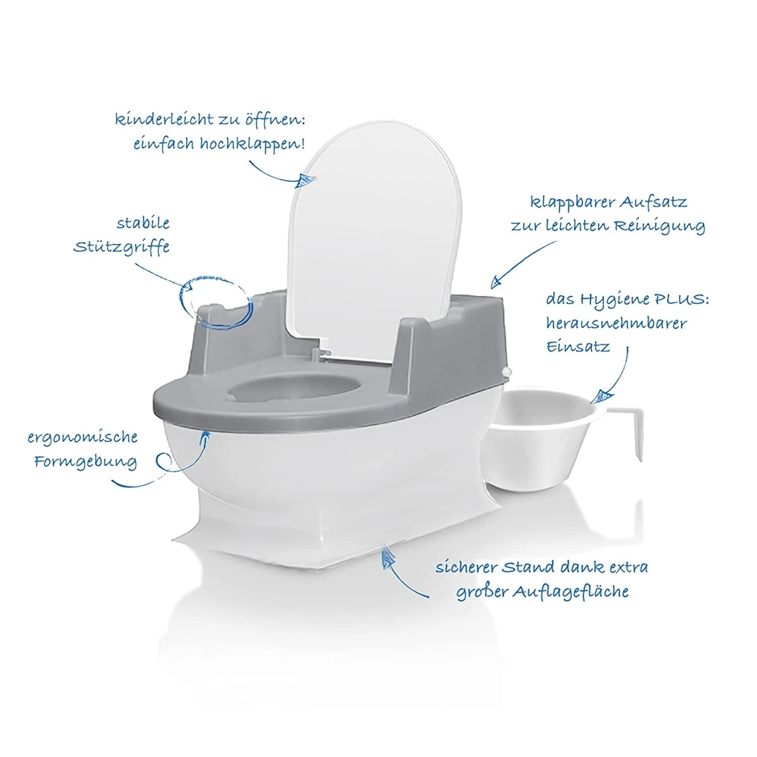 - Könnyen tisztítható: higiénikus tartalomeltávolítás az összecsukható ülőkének és a kivehető betétnek köszönhetően