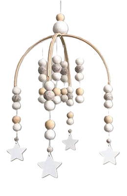 - Természetes anyagok: a kiságy fölé akasztható mobil szélcsengő környezetbarát filcből és horgolt gyöngyökből, kiváló minőségű fa gyöngyökből, fa függesztékből készül, nem mérgező, környezetbarát, biztonságos, bátran használható, kezeletlen természetes bambuszból készült, nagyon könnyű, és felakasztható a kiságyra vagy más helyekre.