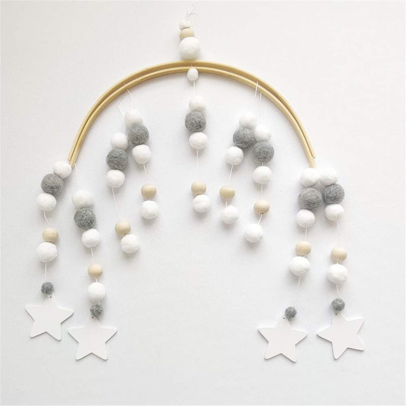 - Egyedi és minimalista design: a filcgolyók kiváló minőségűek, és nem gabalyodnak össze egymással. Vizuális stimulációt nyújtanak a babáknak mélységgel. A természetes, nyugtató színek elegendő érdeklődést keltenek az újszülöttekben, de nem túlstimulálnak. Ugyanakkor a világos színek vizuálisan is ösztönözhetik a babát, felkeltik kíváncsiságát, fejlesztik a színfelismerő képességét.