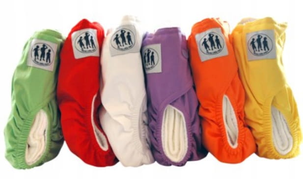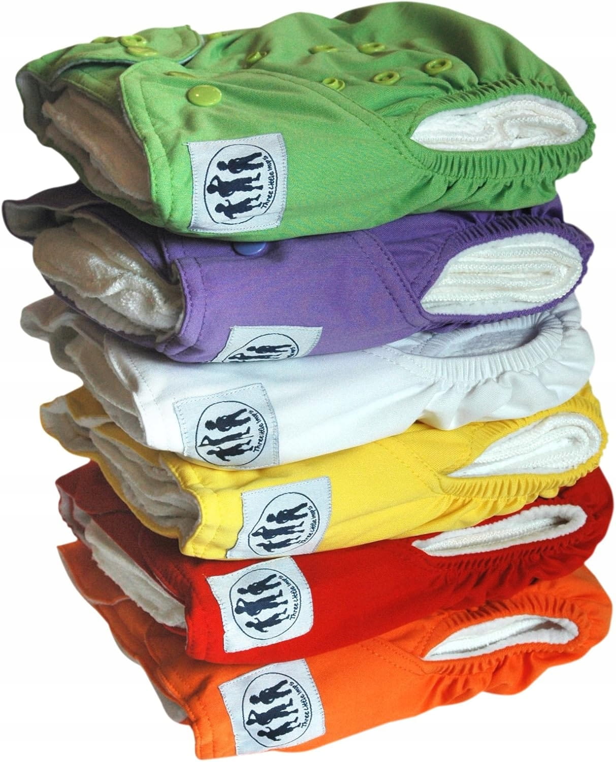 - Egy méret minden gyermekre 3 és 13 kg között. Puha és könnyen tisztítható. (Minden pelenkára 6 hónap garancia vonatkozik – lásd a termékleírást). A csomag színei: piros, narancssárga, zöld, sárga, fehér és lila – ez 6 réteg és 12 betét szettenként. A pelenkák praktikus hordtáskában vannak csomagolva, amely újra felhasználható pelenkák vagy betétek tárolására – lásd a képet lent.