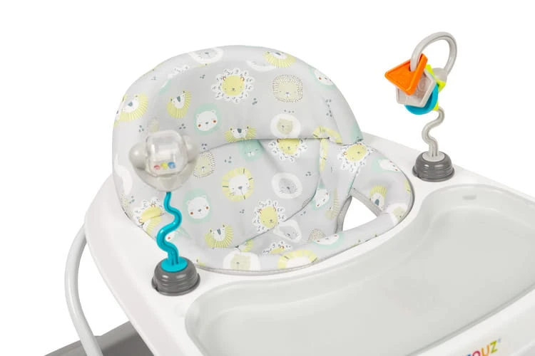 Az ülés magassága állítható (22-től 26 cm-ig), így a járóka tökéletesen igazítható a gyermek magasságához. A formázott háttámla és a puha szerkezet támogatja a helyes hátpozíciót, ami kényelmet és egészséges fejlődést biztosít.