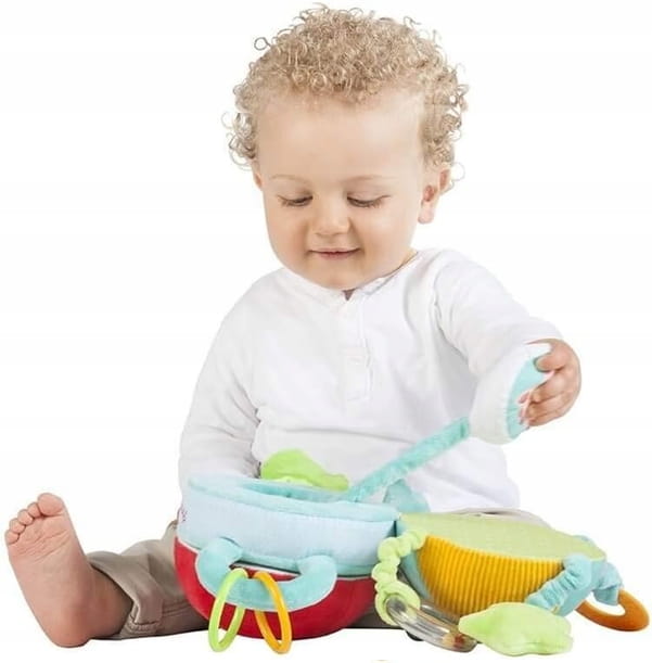 - A játék ülve játszáshoz vagy babakocsihoz, kiságyhoz, autósüléshez akasztható.