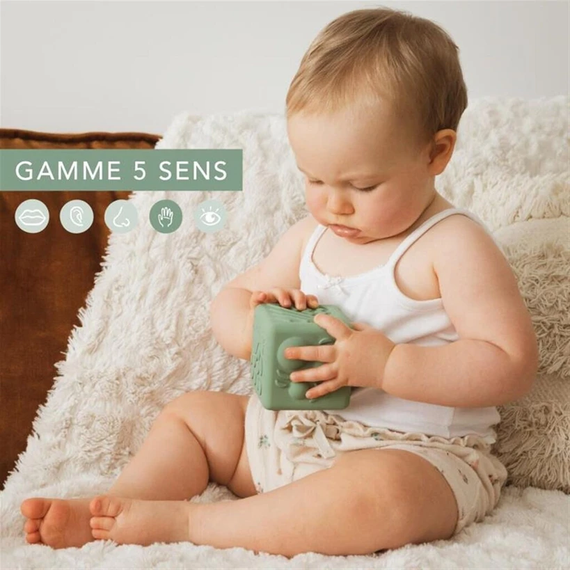 VULLI Kaucsuk kocka textúrákkal játékhoz 7,3 cm SOPHIE zsiráf
